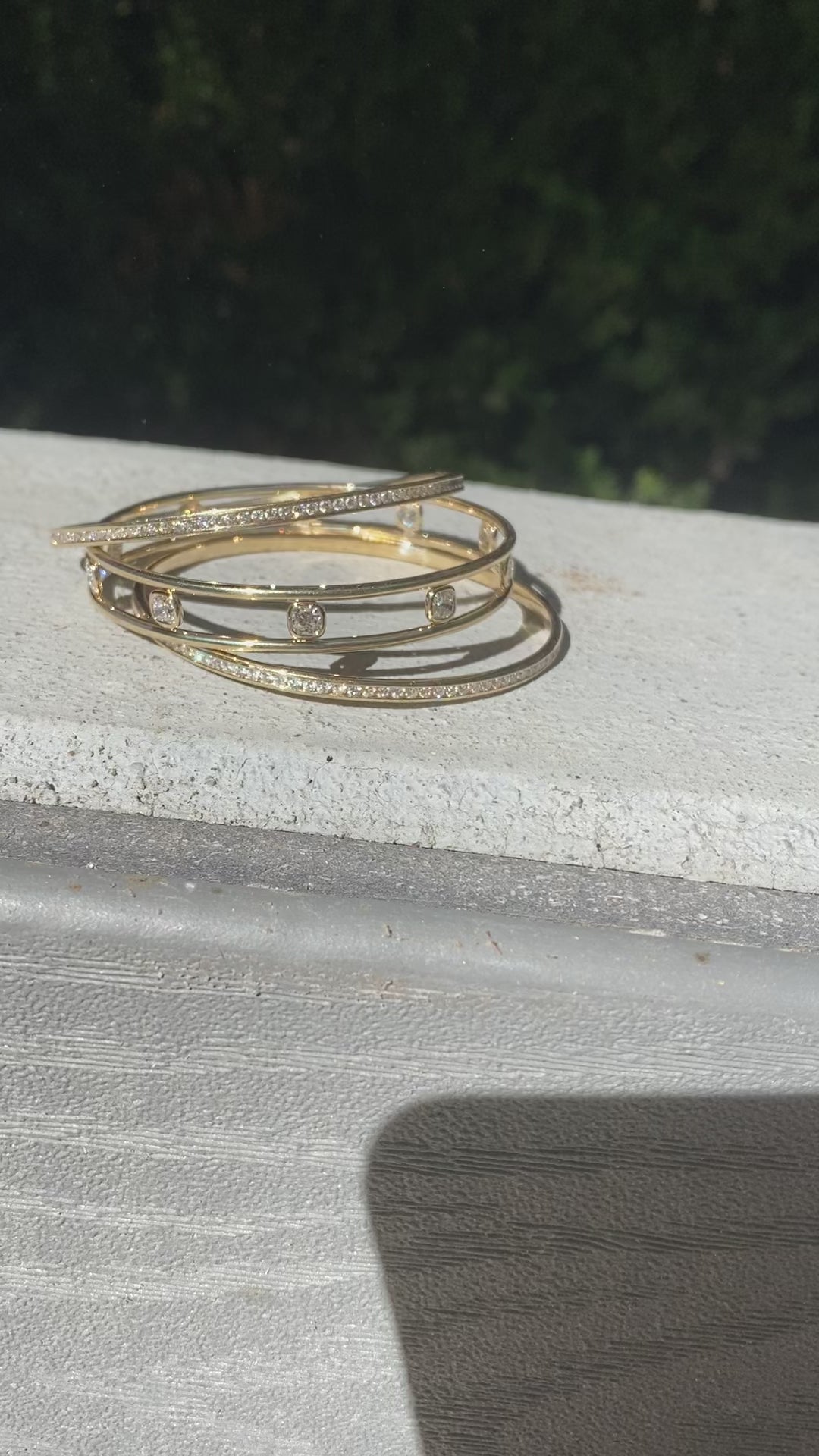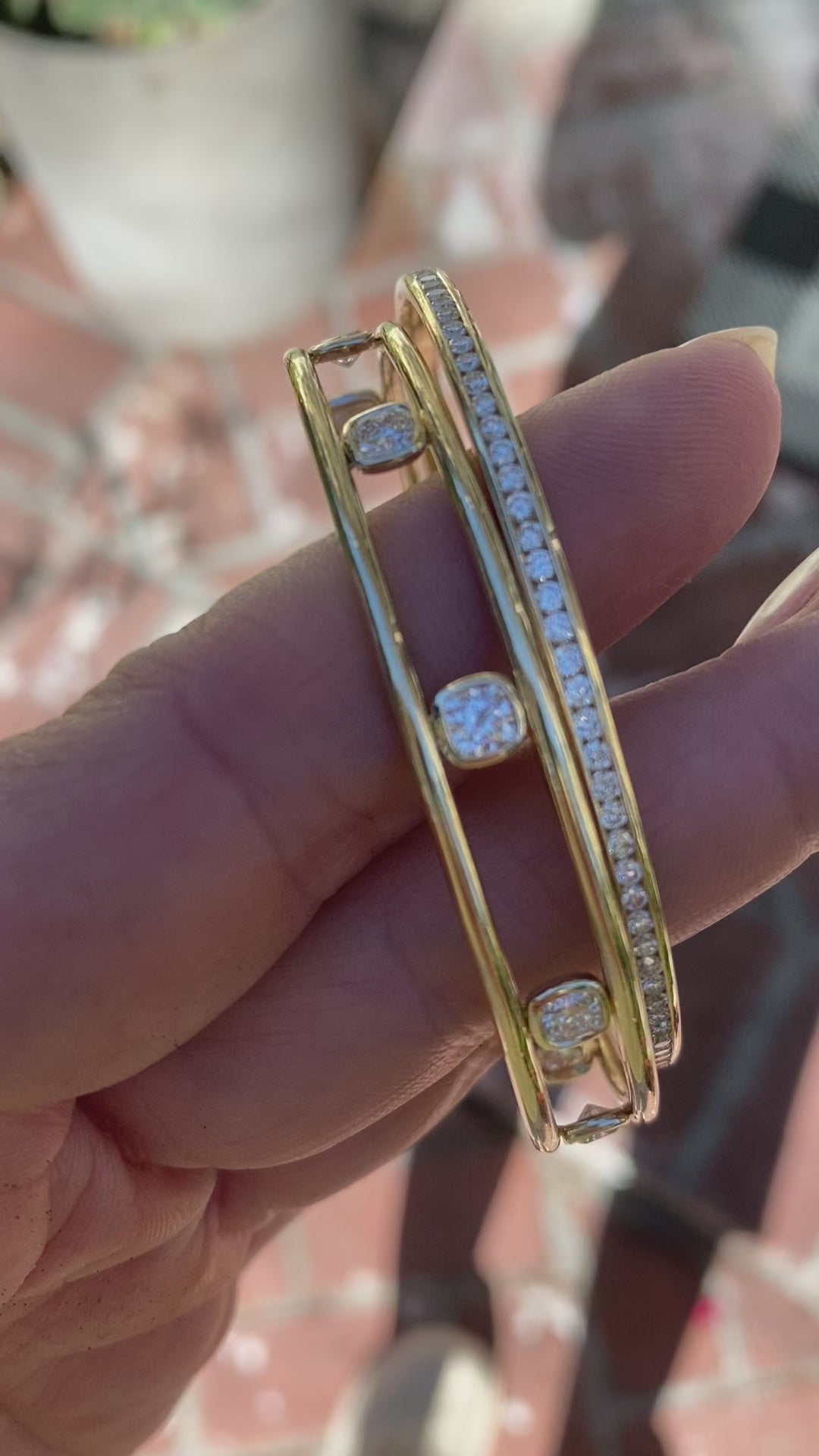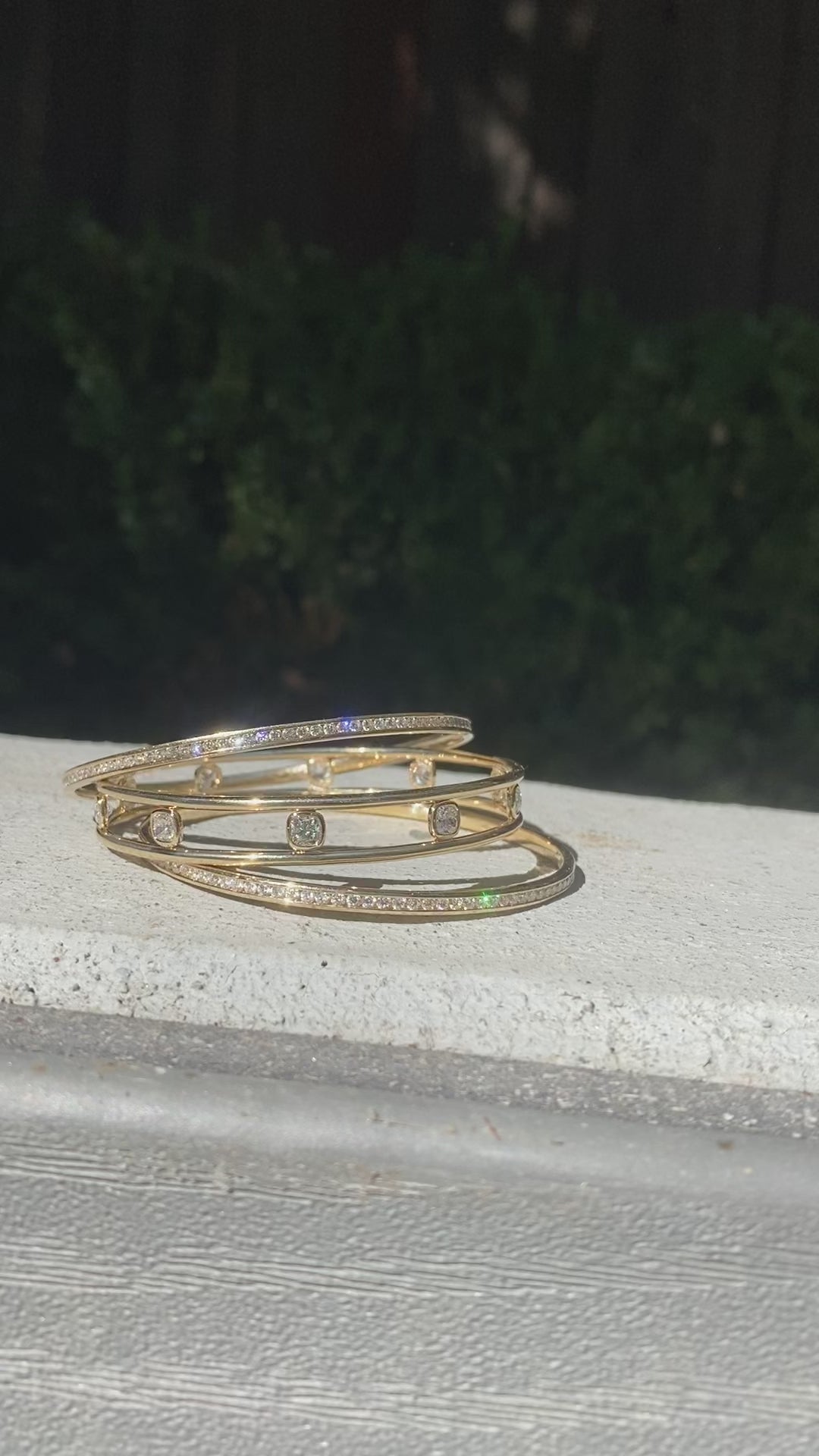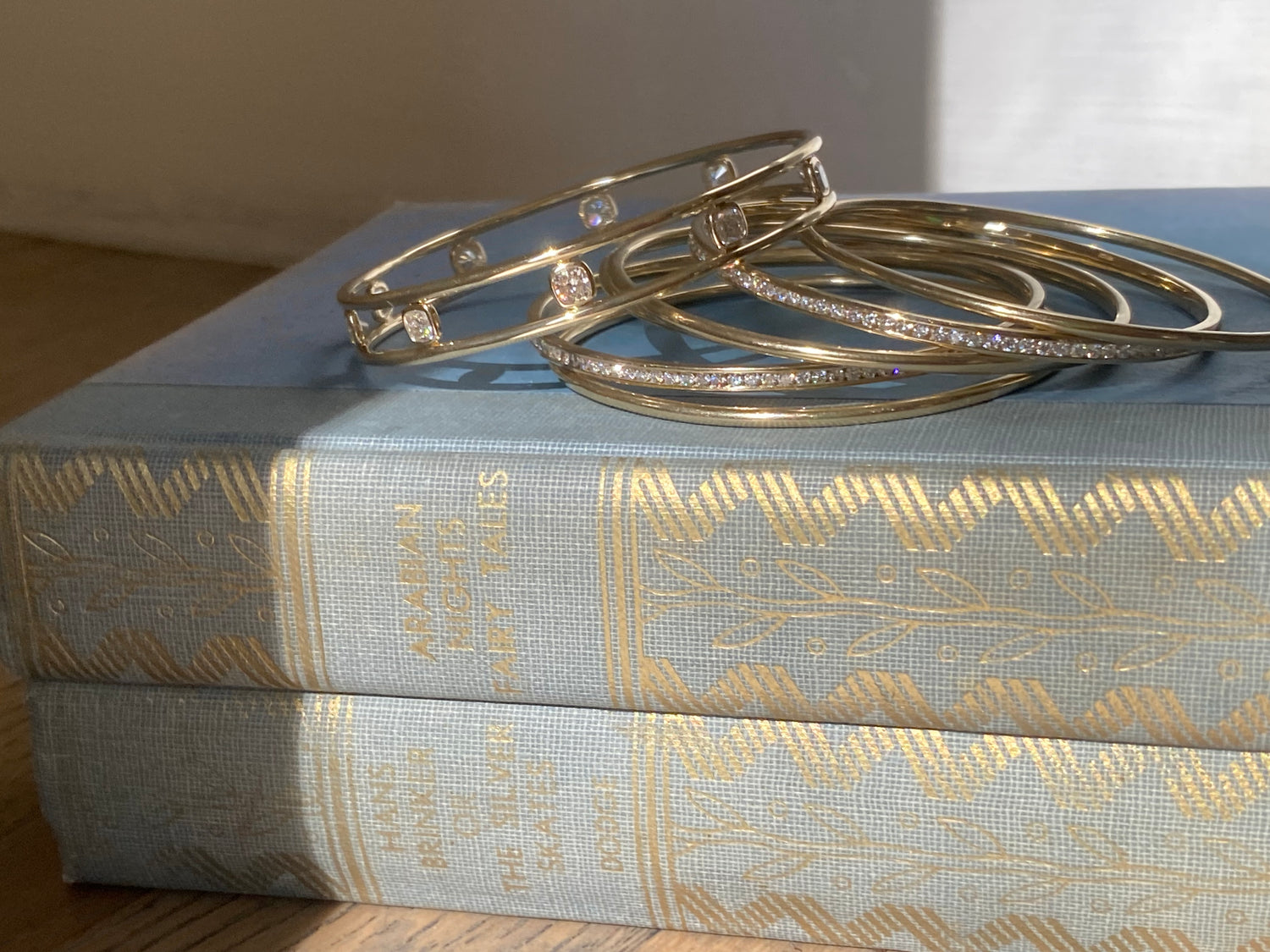 The Luxe Legend Snazzy Bangle is made with 2.5 carats of DE color VS1-2 lab grown diamonds (mined diamonds can be used upon request). I use 10, big juicy 1/4 carat cushion cut diamonds. beautifully set in 14 carat gold bezels.